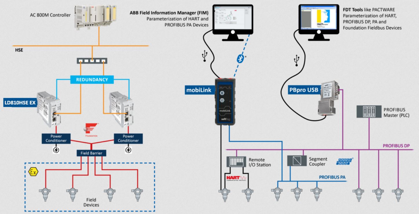运用Softing mobiLink ,实现ABB FIM 对 HART、PROFIBUS PA现场设备的配置、参数化和监控。