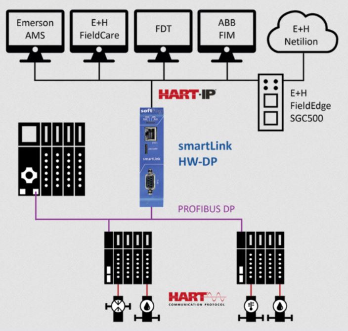 smartLink HW-DP提供对PROFIBUS DP网络的独立PLC访问。将PROFIBUS和HART设备连接到HART